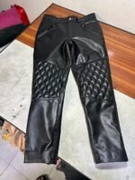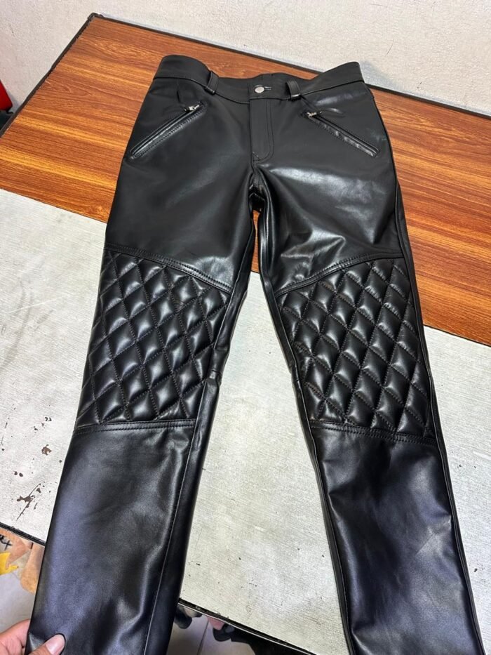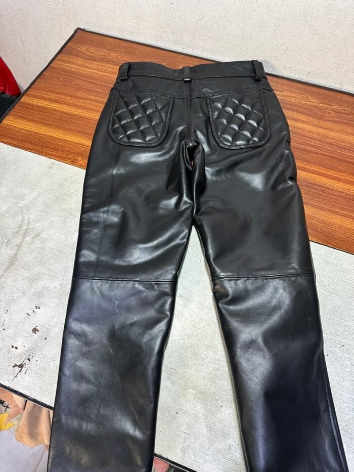 Home Men Leather Pants Leather Black quilt jeans